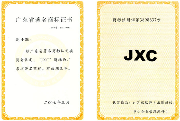 [市級(jí)認(rèn)定] "小聰JXC"榮獲2004年廣州市首家軟件著名商標(biāo)